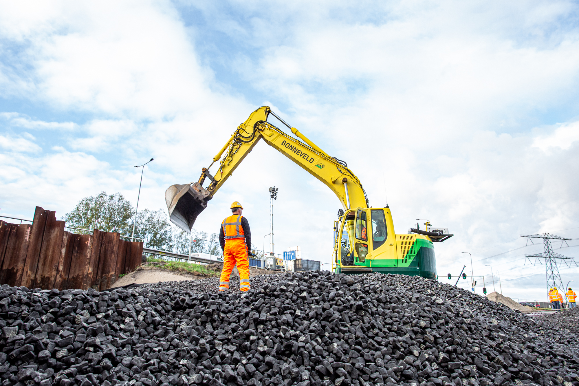 Wij kijken in de ontwerpfase al hoe een constructie gebouwd kan worden met een zo’n klein mogelijke CO2 footprint, door transportbewegingen en het materiaalgebruik te minimaliseren. Joosten zet een flink stap vooruit door zelf geotextiel op basis van biologisch afbreekbare materialen te ontwikkelen. Bij de aanleg van tijdelijke constructies kijken we hoe we materiaal, zoals bijvoorbeeld EPS, opnieuw kunnen gebruiken in een volgend project. De lastigste is het recyclen van geotextiel en geogrids. Recyclen van deze materialen is technisch goed mogelijk, maar praktisch nog ingewikkeld. Door vervuiling door grond, de combinatie van grondstoffen en de mechanische veroudering is hoogwaardig hergebruik van de grondstoffen niet meer mogelijk. Samen met onze leveranciers kijken wij continu hoe dit proces verbetert kan worden.