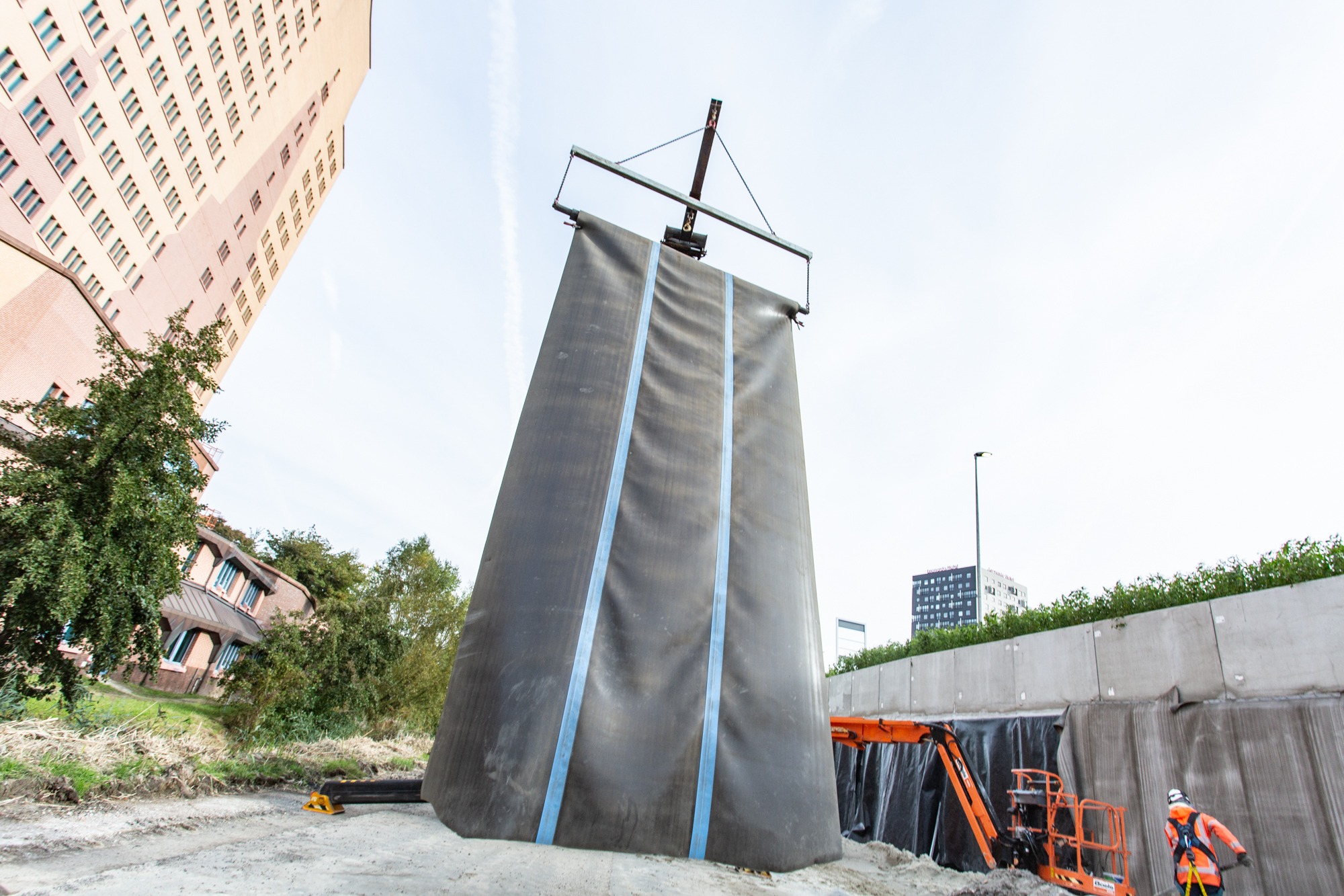 Op verschillende plaatsen in dit megaproject worden wegen, opritten en afritten opgehoogd met een lichtgewicht EPS-constructie. Bij een aantal constructies wordt de zijkant esthetisch afgewerkt met duurzame groenschermen. Omdat de groene afwerking de EPS-constructies niet voldoende bescherming biedt tegen de invloed van UV-licht, brand en vandalisme werd gezocht naar een aanvullende oplossing om het EPS te beschermen. Verschillende opties – waaronder geotextiel en prefab betonwanden – zijn besproken. Een oplossing met geotextiel bleek niet voldoende bescherming te bieden. Met betonwanden of prefab panelen zou het EPS wel goed beschermd zijn, maar door een combinatie van de benodigde hoogte, ruimtegebrek en hoge kosten viel ook deze optie af. Joosten Concepts bleek met Concrete Canvas het beste van geotextiel én beton te combineren in één oplossing.