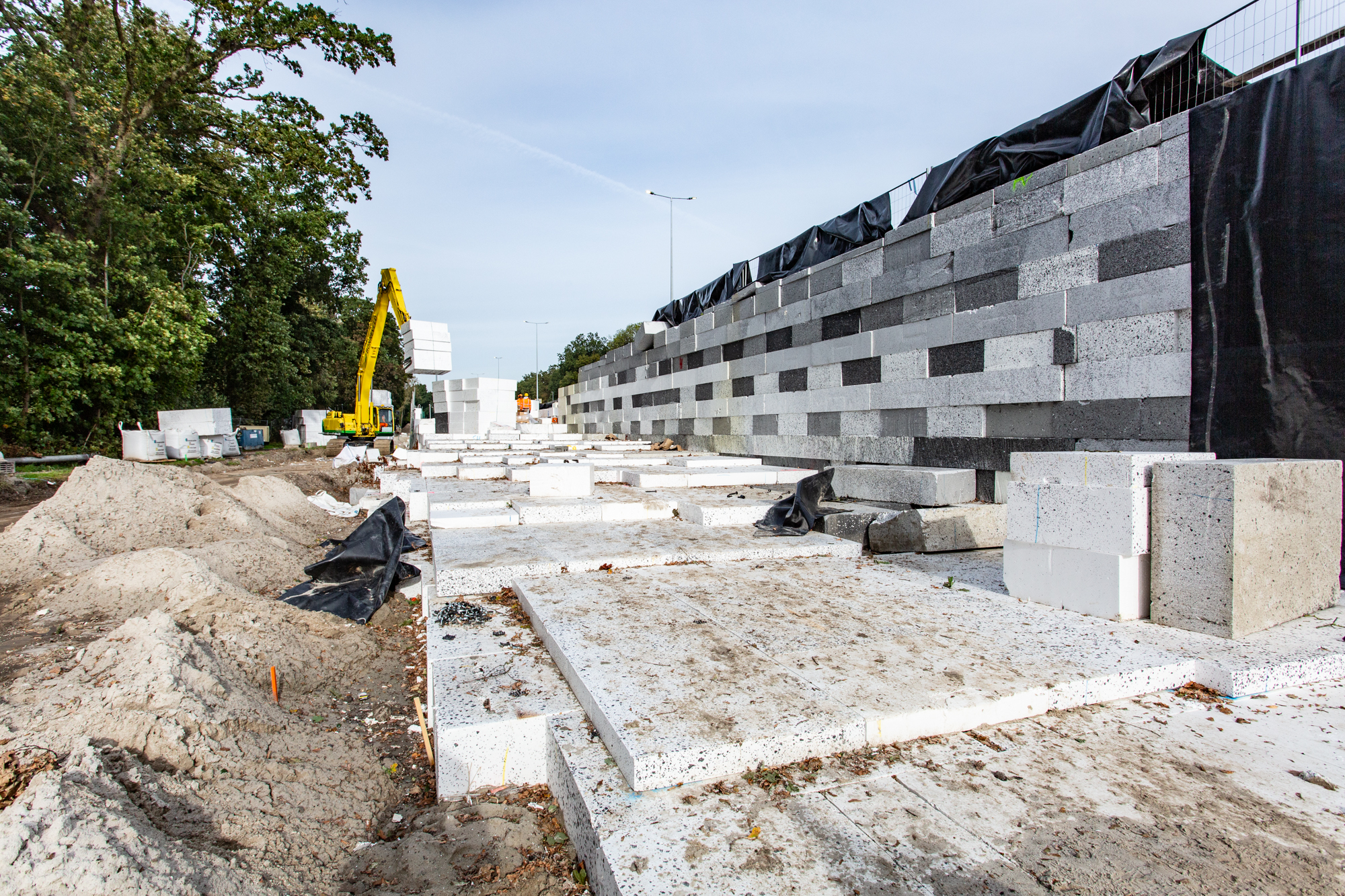 Voor Aanpak Ring Zuid Groningen worden EPS-constructies toegepast voor lichte ophogingen van wegen en op- en afritten. Omdat EPS extra bescherming nodig heeft tegen UV, brand en vandalisme, is gekozen voor Concrete Canvas als duurzame afwerking. Concrete Canvas combineert de flexibiliteit van geotextiel met de sterkte van beton, zonder zwaar materieel of fundering. Dankzij slimme verankering en samenwerking tussen partners is een veilige, kostenefficiënte en langdurige oplossing gerealiseerd.