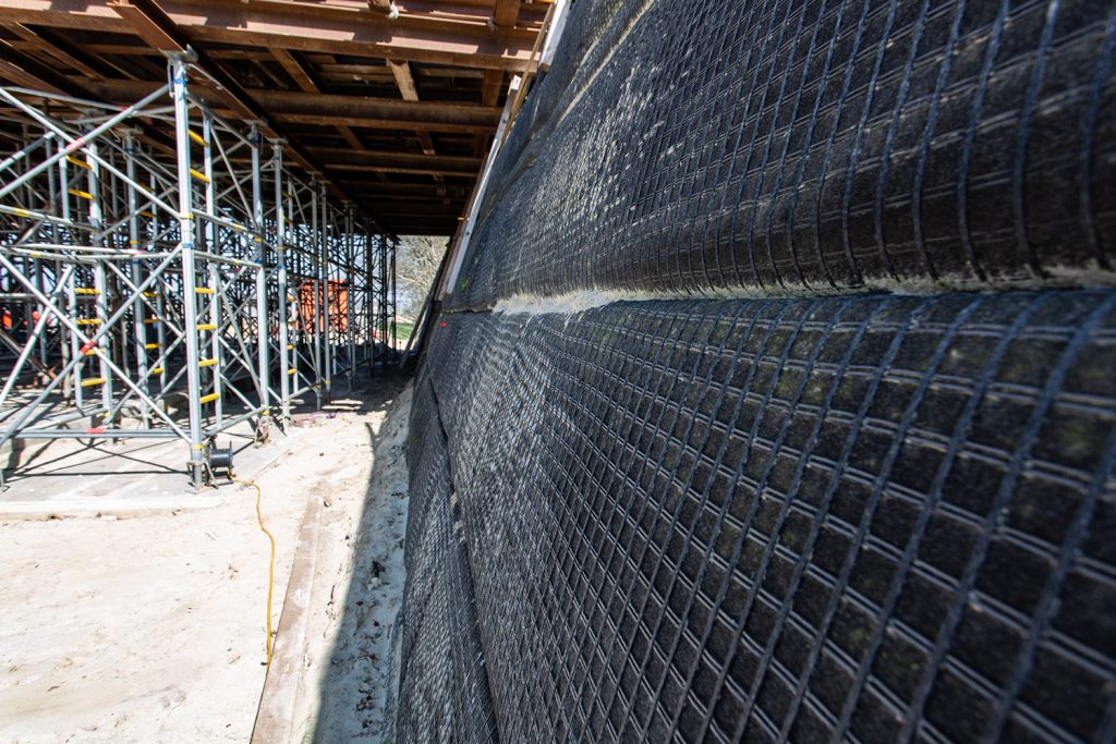 Een gewapende grondconstructie biedt een betrouwbare oplossing voor steile taluds en hoge belastingen. Ook bij wegen en spoorlijnen zorgen ze voor een duurzame, stabiele onderbouw die intensieve belasting kan weerstaan. Op aansluitingen met kunstwerken – zoals bruggen en viaducten – levert een GGC ze een naadloze overgang tussen verschillende constructies. Daarnaast zijn ze ideaal voor op- en afritten, waar hoogteverschillen veilig moeten worden opgevangen. Verder worden ze toegepast bij landhoofden en keerwanden. Tot slot is een GGC geschikt voor taludversterking, dijkverhoging en als geluidsschermen.